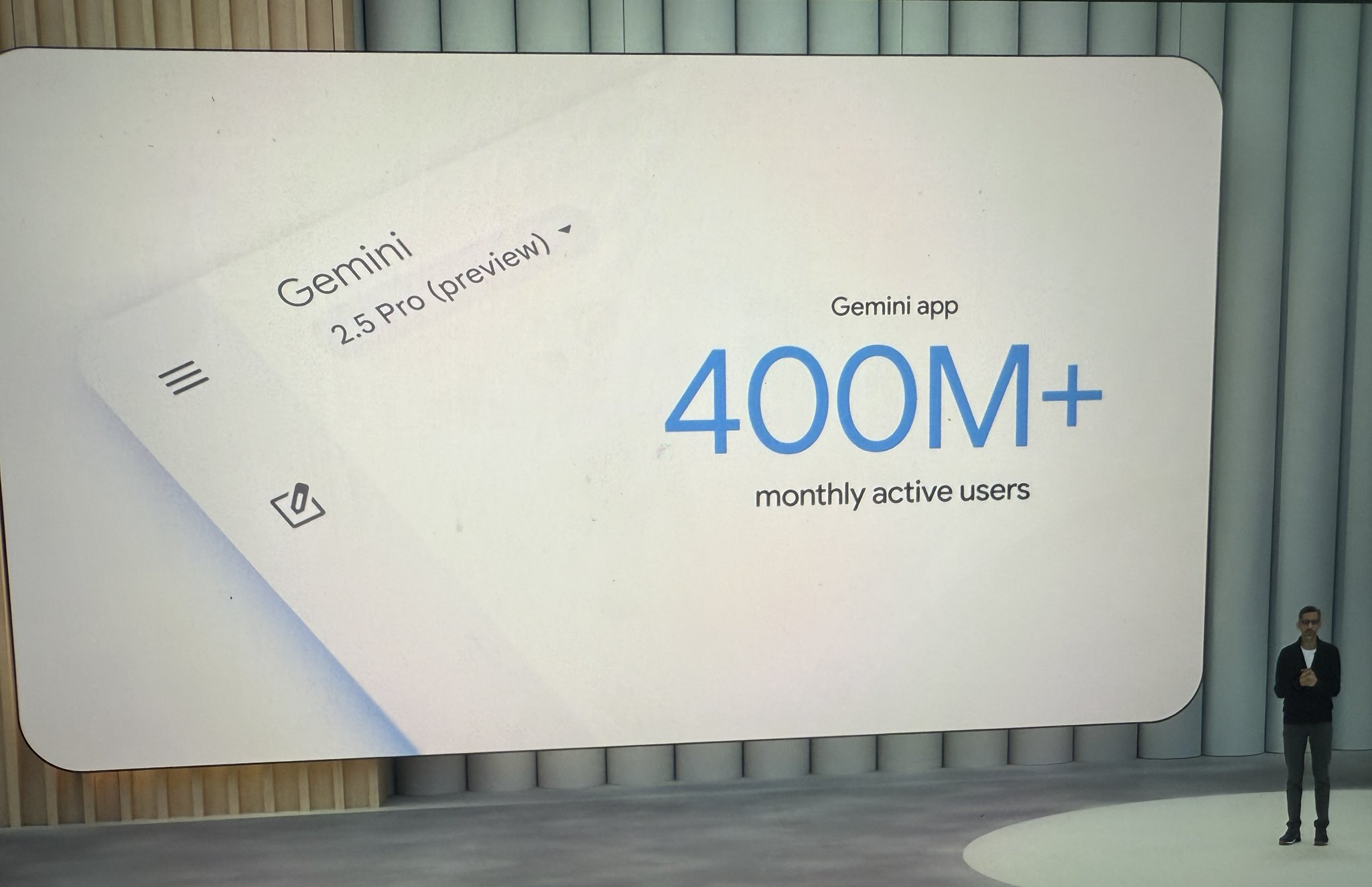 In a press release published before Google I/O, CEO Sundar Pichai said that Google's Gemini AI app now has more than 400 million monthly active users. That number is up from March, when it estimated that Gemini had 350 monthly-active users (TechCrunch, March 2025).